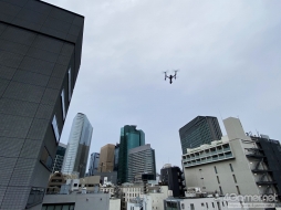 これは東京の銀座あたりの風景ですよね。都内だと,ドローンは飛ばすだけでも許可などを取るのが大変そうですが,このあたりはどのようにクリアしたんですか?