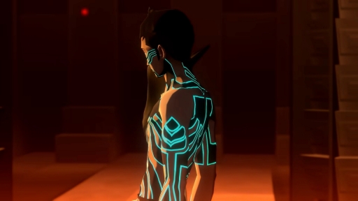 人修羅が落ちてくるシーンと暴れるシーンもそうなんですが,常に「静と動」や「光と闇」といった対比は意識していました。模様が浮かぶシーンで言えば,背反するものが1人の身体の中でうごめいていて,それをどうやって自分の中に閉じ込めるのか,どのように抗うのか,という点ですね。