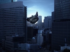 最初は僕の中で,なんとなく“絵は綺麗じゃなきゃいけない”みたいなものがあって,晴れの中で後光が差す映像みたいなのを撮ろうと考えていたんです。曇りの中で1度だけそういった絵が撮れたので,それを使って人修羅が落ちるシーンを作ってみたんですが,それがなんだかしっくりこない。“生”の東京に人が落ちてくる感じというのがしなかったんです。