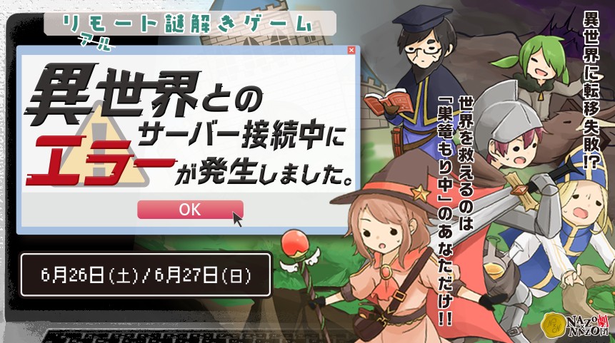 オンライン謎解きゲーム「異世界とのサーバー接続中にエラーが発生しました。」が6月26日と27日に再演決定