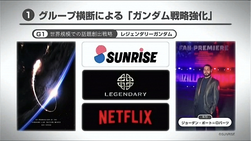 具体的な施策の筆頭は,サンライズとレジェンダリー・ピクチャーズ,そしてNetflixの3社協同事業となる実写映画版「機動戦士ガンダム」で,藤原氏によると製作は着々と進行しているとのこと。