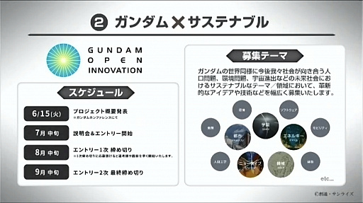 ■人口問題・地球環境問題への新しい発想や技術を募集する新企画「ガンダムオープンイノベーション」を実施!