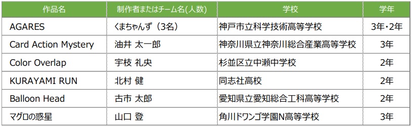 日本ゲーム大賞2021 U18 部門の決勝大会へ進出する6作品が決定