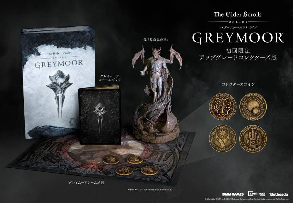 MMORPG「エルダー・スクロールズ・オンライン」のアップデートパッケージとなる「グレイムーア 日本語版」とそのデジタルアイテムに,吸血鬼の王の像やコレクターズコイン,限定スチールブックなどを同梱した初回限定アップグレードコレクターズ版です。特別付録としてベースゲーム・グレイムーア・最新のブラックウッドのアクティベーションコードが付属します。