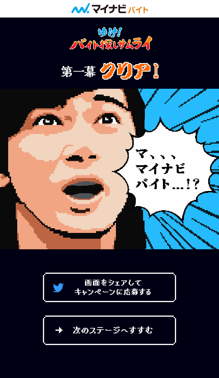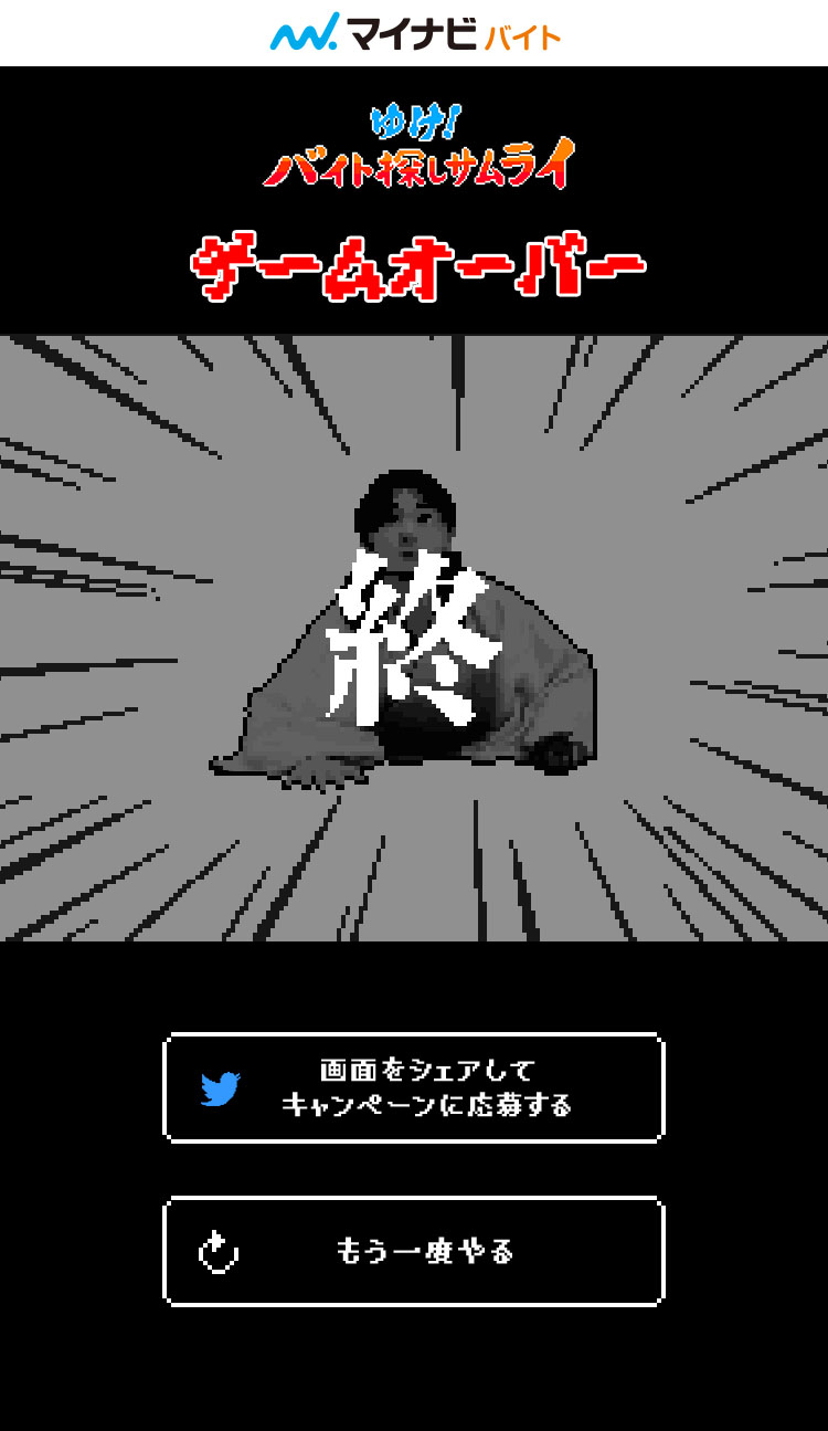 マイナビバイトのゲーム「ゆけ!バイト探しサムライ」が新CMの放映開始に合わせて公開に