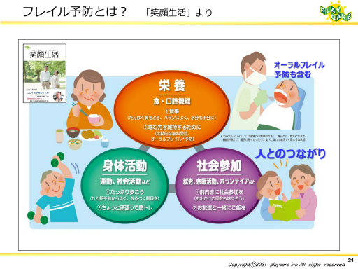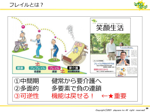 フレイル予防ビジネス市場が大きいことや,市場の構造も紹介された