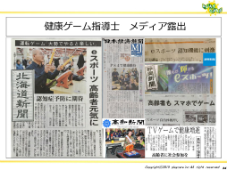 日本アクティビティ協会が認定した健康ゲーム指導士は,現在全国に約750人いるという。また高齢者がゲームをプレイするということが世間的にはまだ珍しいことであるため,健康ゲーム指導士と合わせて報道番組や新聞などのメディアに採り上げられることも少なくないそうだ。