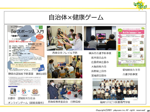 日本アクティビティ協会が提供している,ゲームを介護施設や自治体に導入するためのパッケージも紹介された