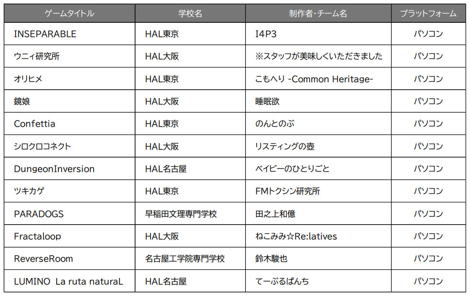 HAL,ゲーム学部の作品が「日本ゲーム大賞2021 アマチュア部門」最終審査“12作品中10作品”に選出