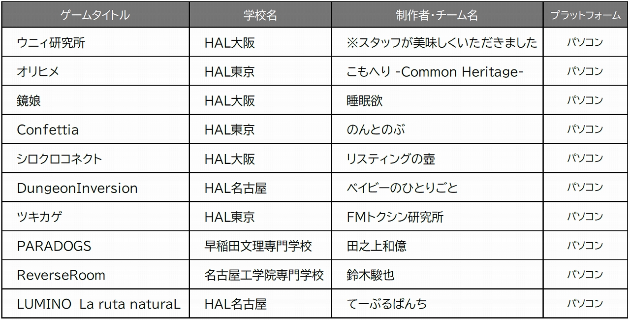 「日本ゲーム大賞2021アマチュア部門」で専門学校HALが連続受賞記録を更新
