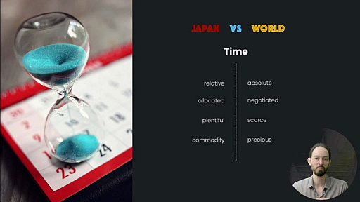 日本は時間の捉え方が独特だ。プロジェクトの最初では時間がゆっくり流れ,期日までの時間がまるで永遠にあるかのように,優先度の高くないものに費やされるが,3分の2を過ぎたあたりからはものすごい勢いで過ぎていく。個人の作業時間も,「受け持ち作業を完成させるにはこれだけ必要」と上司に交渉して確保するものではなく,どこかからか割り当てられる。新しいツールを買うだけで効率が上がって時間を節約できるのに,非効率な旧型ツールを延々と使い続けて時間を無駄にするといったように,時間は希少ではなく安価なものとみなされる。