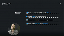 自分のために勉強し,継続的に取り組みを行う。会社はこうした時間を確保することを推奨すべきであり,社員が向上心を持っていることを確認しなくてはならない。マネジメントスタッフは,ツールの買い換えによる作業効率のアップなど,容易に解決できる問題に対して会社としっかり交渉する。会社に対してと同じ位,自分の職業に対して忠誠を尽くす。ゲーム開発に求められるスキルを教えてくれる正式なカリキュラムやプログラムが必要であり,転職や異動などの回転率を上げ,キャリアや地位の向上機会を増やす。そして,労働時間を少なくして,給料を増やすべきだ。