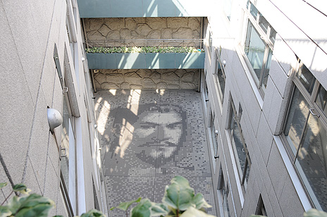 日吉オフィスの中庭にある「信長」タイル