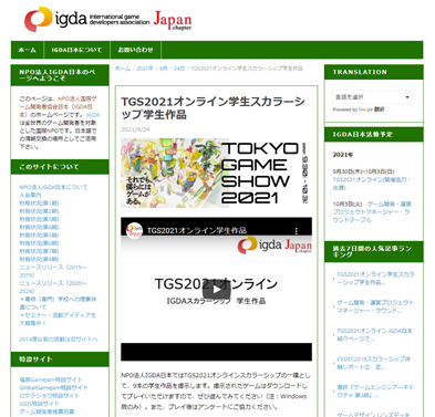 IGDA日本,TGS 2021にスカラーシップで学生ゲーム9作品を展示