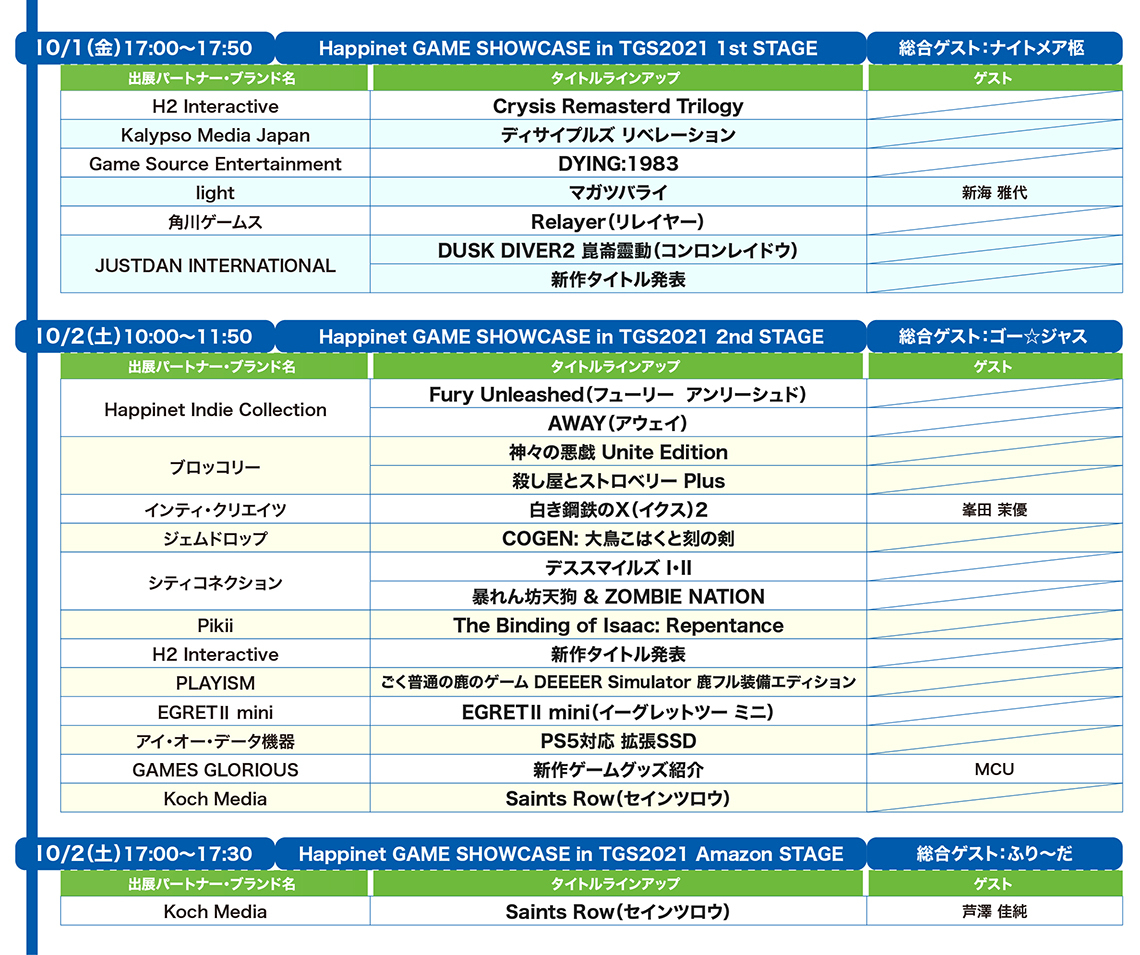 「Happinet GAME SHOW CASE in TGS2021」の番組スケジュールや追加ゲストが発表。Twitterキャンペーンも実施