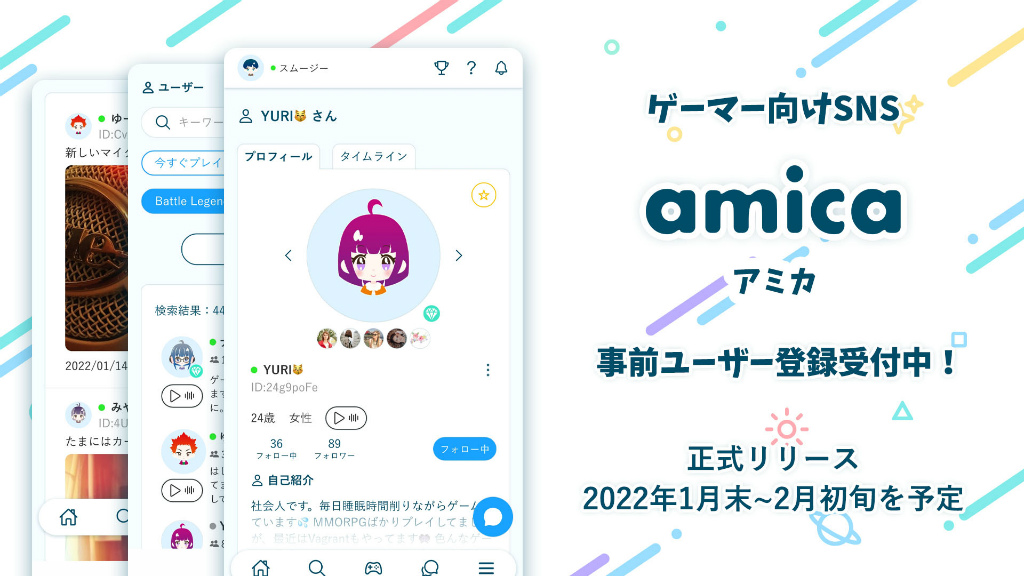 ゲーマー向けSNS「Amica」の事前登録受付を開始。正式リリース時期は1月下旬