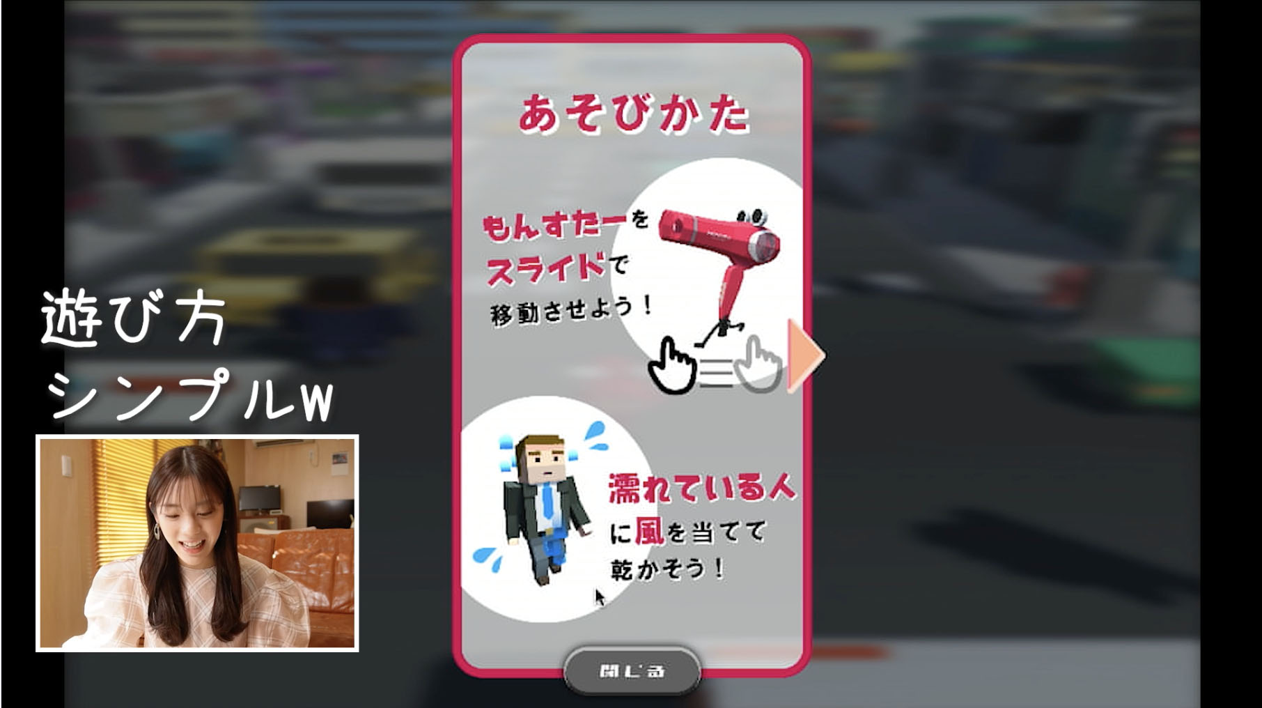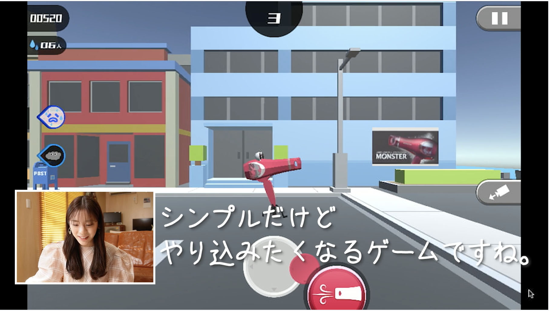 ドライヤー“MONSTER”がひたすら髪を乾かす「風だろ!ゲーム」を,貴島明日香さんがプレイする動画が公開に
