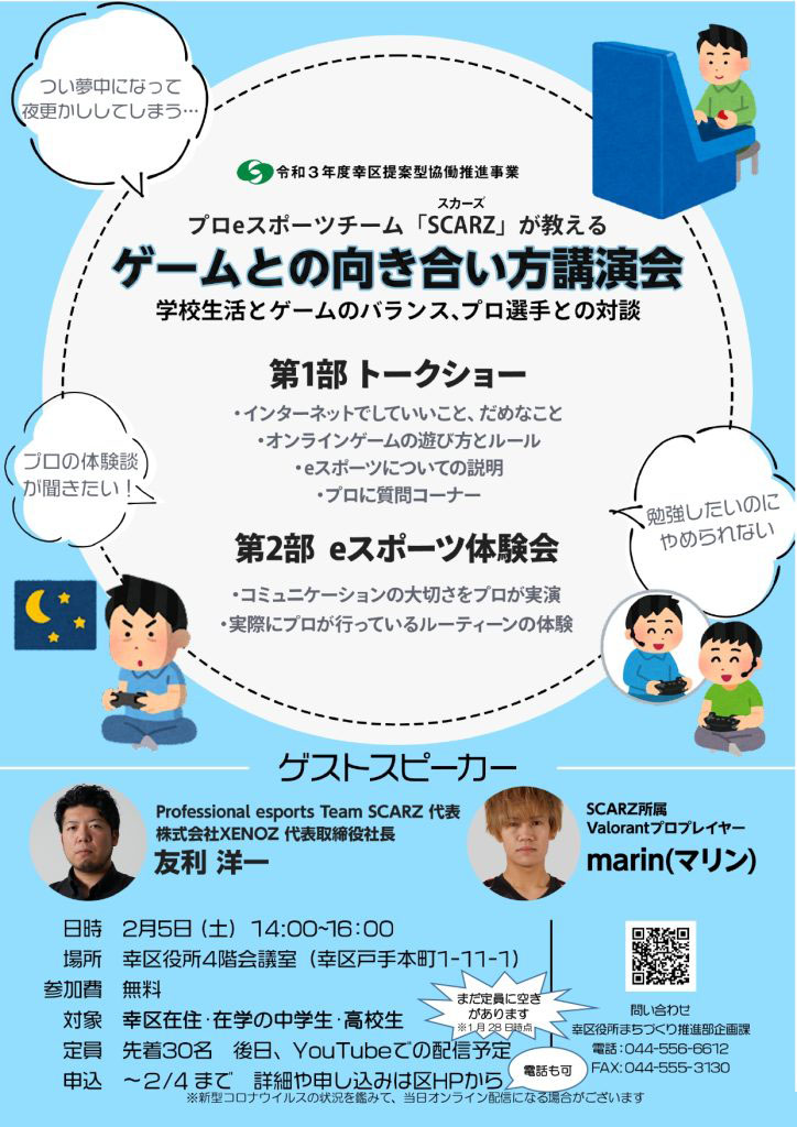 プロeスポーツチーム「SCARZ」と川崎市幸区役所の協働による講演会の開催報告が公開に