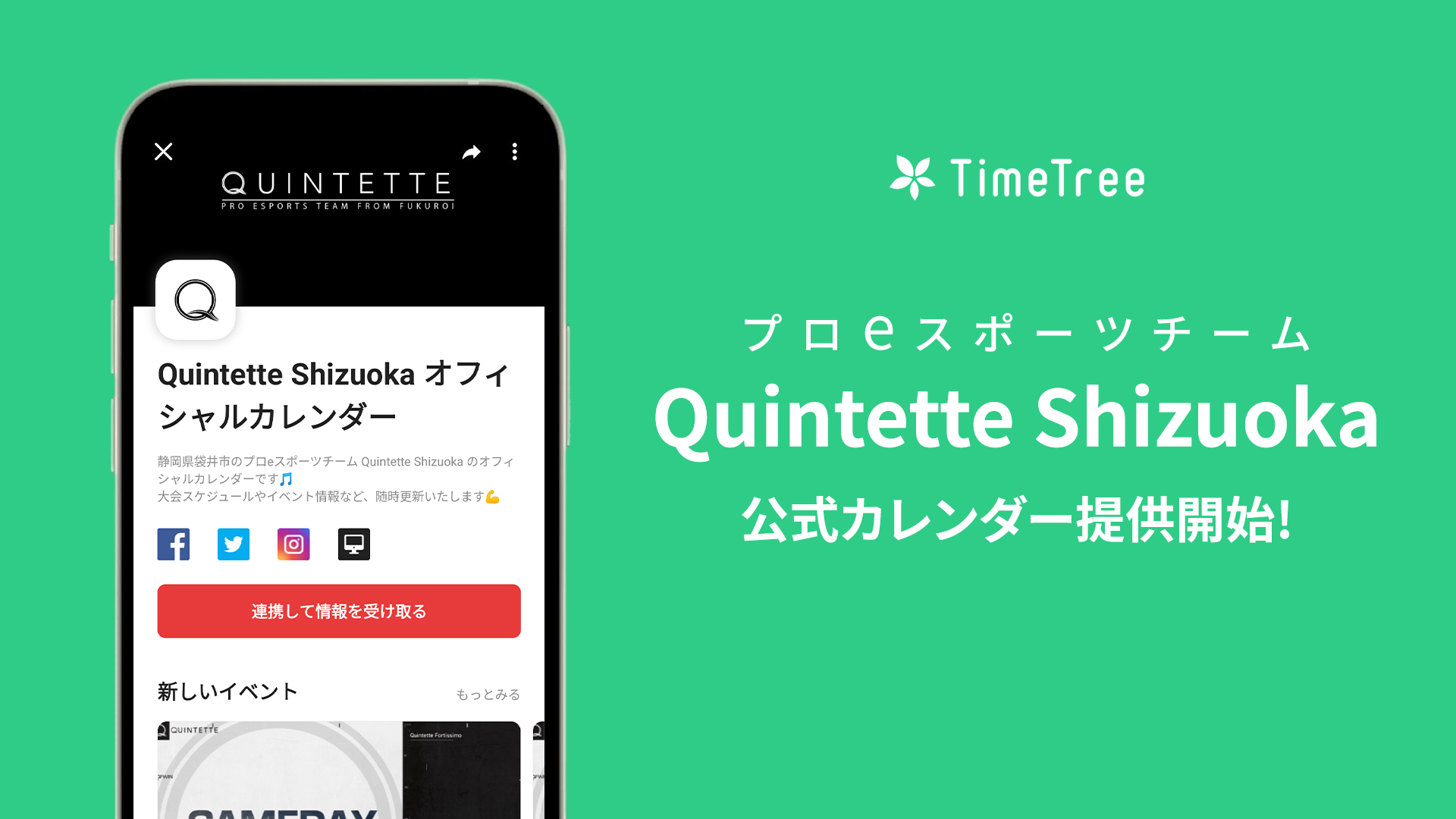静岡県のeスポーツチーム“Quintette Shizuoka”の公式カレンダーが「TimeTree」で提供に