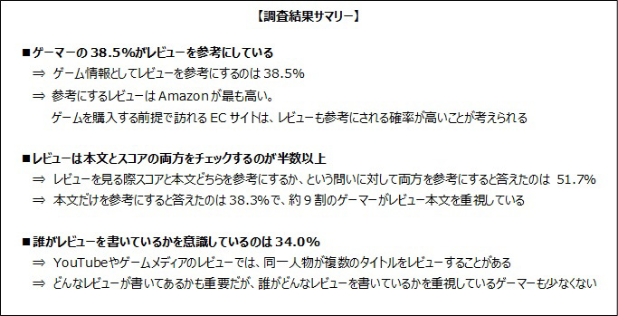 レビューを参考にするゲーマーは38.5%,そのうち約9割がレビュー本文を読んでいる。ゲームエイジ総研が調査の結果を公開