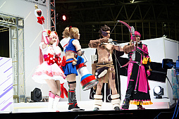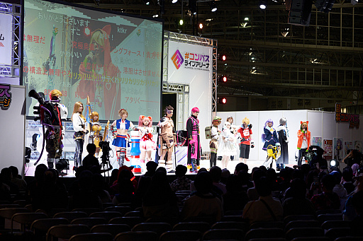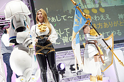NHN PlayArtとドワンゴが共同で開発・運営している「#コンパス〜戦闘摂理解析システム〜」のブースでは,ネットアイドルや“踊り手”による「踊ってみたステージ」や,公式コスプレイヤーによるコスプレショー,撮影会などで盛り上がっていた。