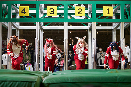 JRA(日本中央競馬会)の「超JRA」では,ウマ娘のコスプレイヤーが疾走していたり,自衛隊ブースには「艦これ」村雨のポップが展示されていたりもしたので,会場を歩いていて気になったものをいくつか紹介していこう。