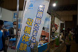 兵庫県洲本市のブースでは,淡路島たまねぎをアピールしていた。そして一緒にスライムも。これは堀井雄二氏の出身が洲本市であるため。ドラゴンクエスト記念碑がある同市だが,最近ではたまねぎ風なスライムのアイテムの販売も行われているそうだ。