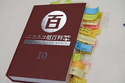 物理的なニコニコ大百科もあったが,そのままプリントされているだけでインデックスはなし。有志が付箋を貼り付けて,検索性を高める方式が採用されていた。