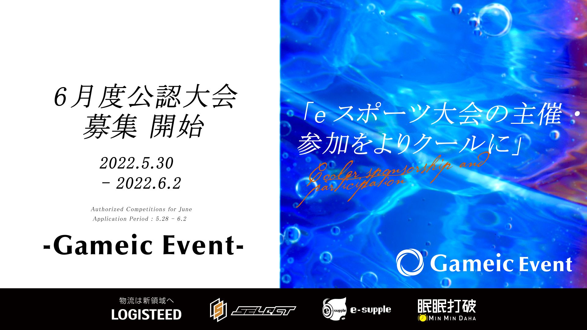 アマチュアeスポーツ大会を支援する「Gameic Event」,6月度公認大会の公募を開始