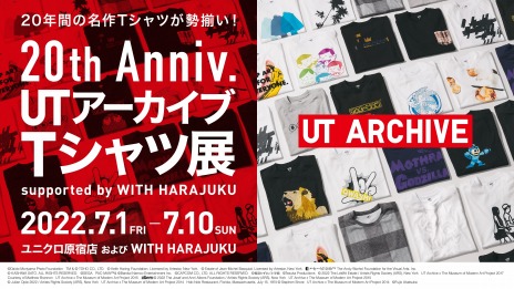 ユニクロのグラフィックTシャツブランド「UT」は、2003年の誕生から20年目を迎えるメモリアルイヤーに、時代を経ても色あせない価値を再発信する「UTアーカイブプロジェクト」をスタートさせています。このWITH HARAJUKUをジャックして、これまでの20年の軌跡を振り返る展覧会「20th UT アーカイブ T シャツ展 supported by WITH HARAJUKU」を7月1日(金)から7月10日(日)まで開催いたします。