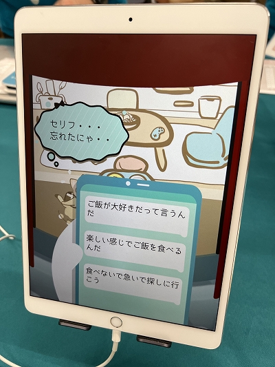 ほかの共演者(やはり猫や犬)は,劇の筋書き通りに演技しているので,プレイヤーが正しくないセリフをねねこに言わせると,戸惑ったり混乱したりする。その様子がおかしくも愛おしいので,ついつい変なセリフを伝えてしまうのだ。