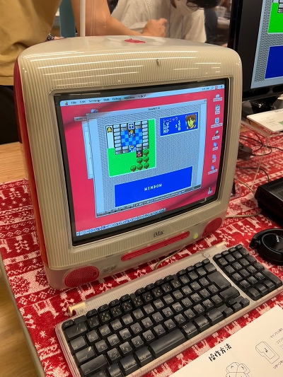 ![]() アトリエミミナのブースでは,iMac上でMSX2エミュレーターを走らせ,MSX2用ソフト「Traditional Story」を展示するという酔狂なことが行われていた |
