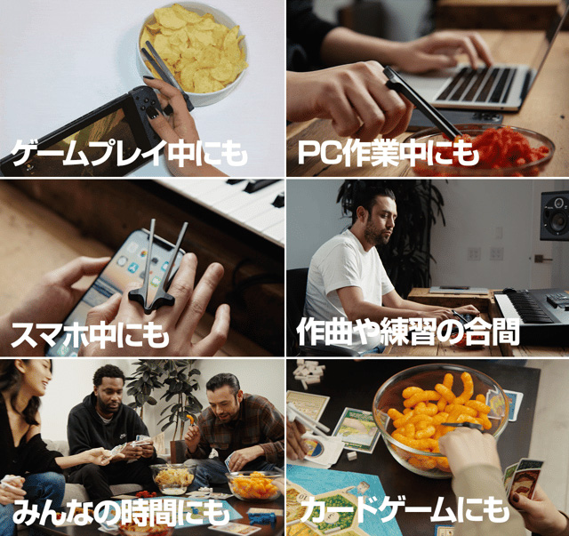 ゲームプレイを妨げないスナック菓子つまみアイテム。指に“箸”風の機能を持たせる「SNACTIV-スナクティブ-」のMakuakeプロジェクト実施中