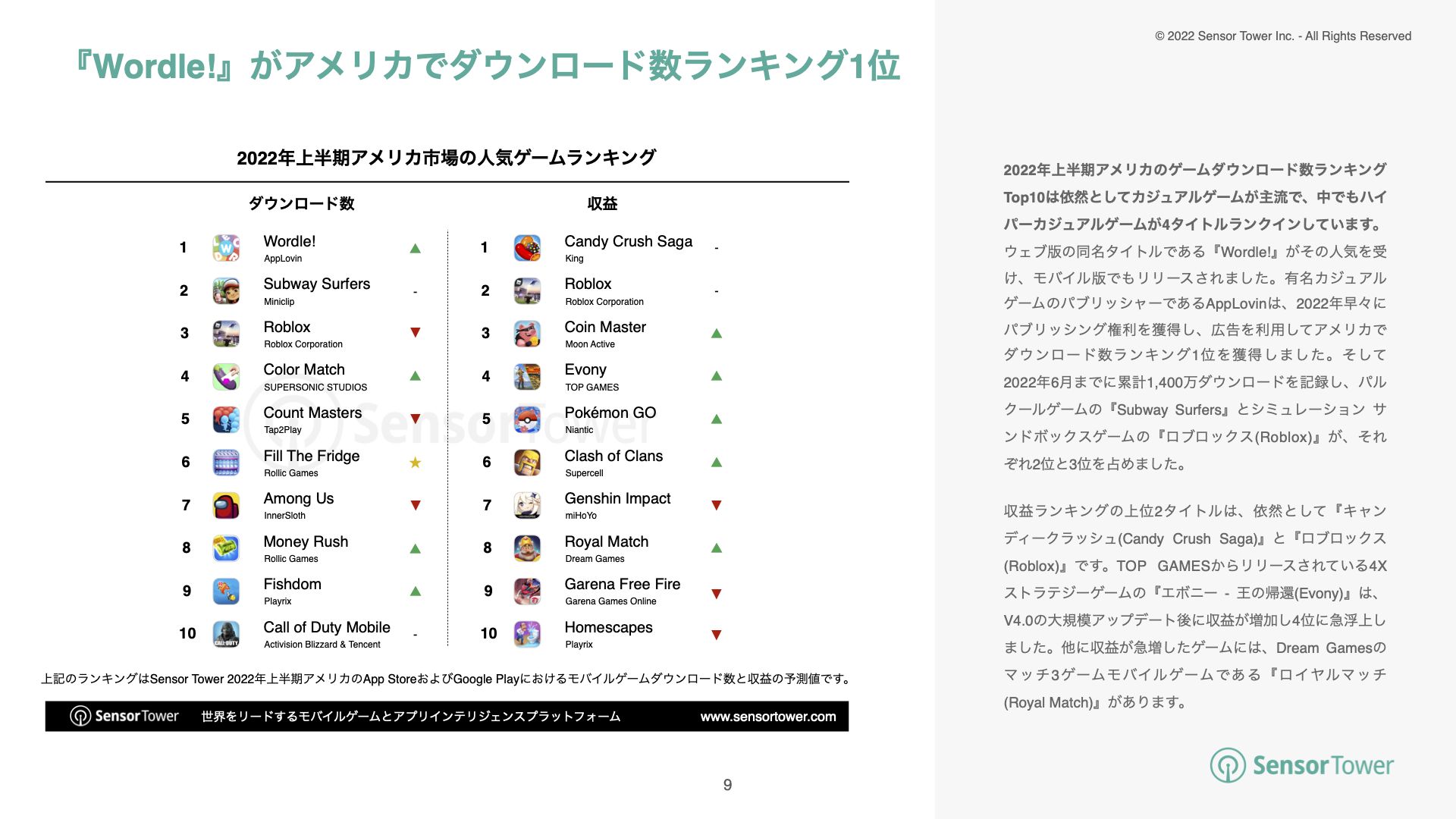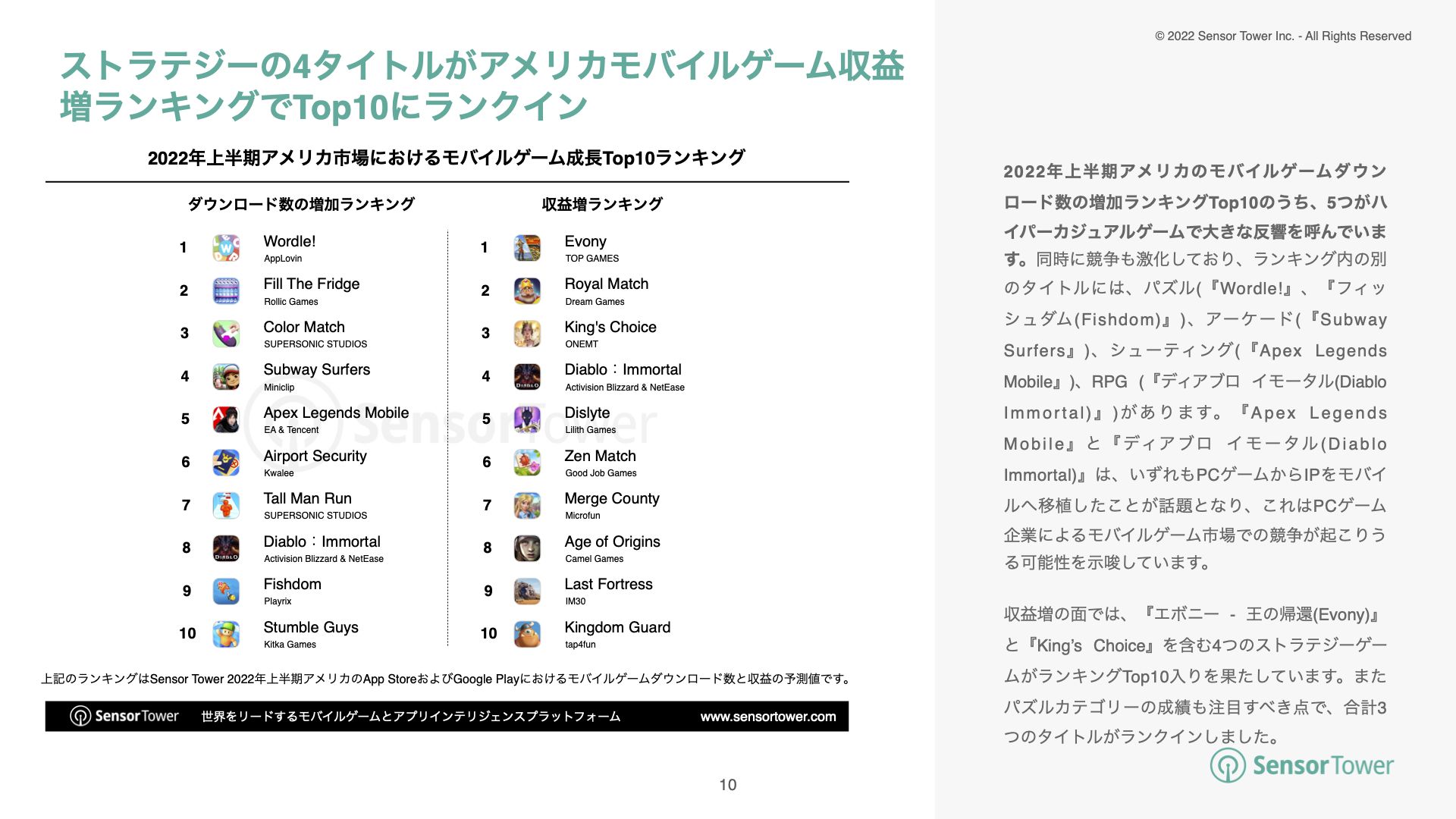 Sensor Tower,レポート「2022年上半期アメリカのモバイルゲーム市場インサイト」を公開