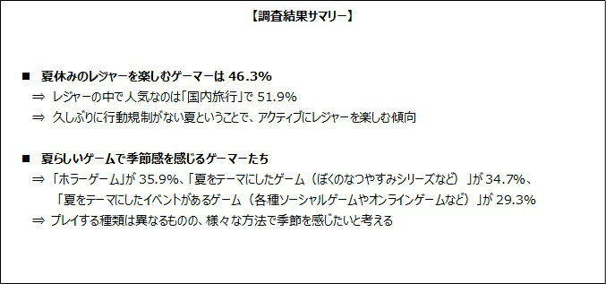 とくに国内旅行が人気。ゲーマーの夏の予定を調査した結果を公開