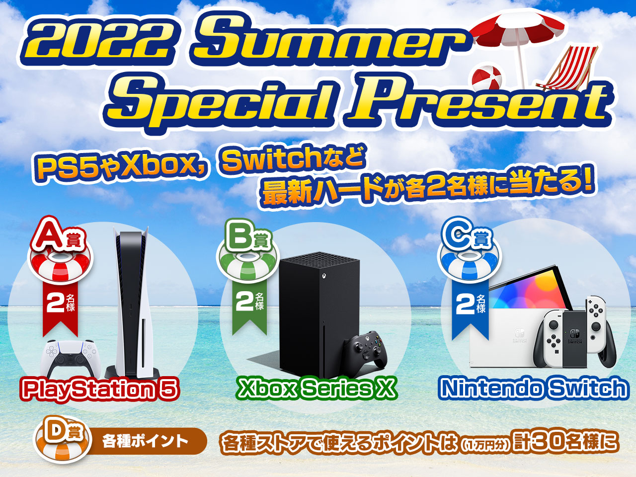 PS5,Xbox Series X,Switch,Amazonギフト券などが当たる「2022 Summer Special Present」開催中。本日(9月7日)21:00締切です
