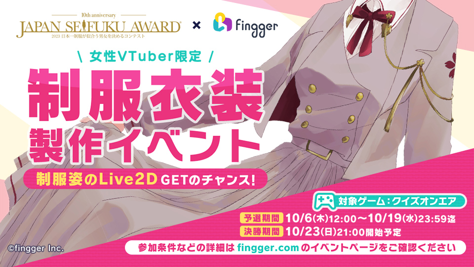 「fingger」で“日本制服デザインアワード”とのコラボイベント開催。参加対象は女性VTuber
