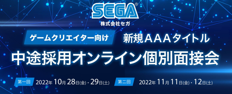 セガの中途採用オンライン個別面接会を開催。デザイナーやプログラマーなどゲームクリエイターが対象に