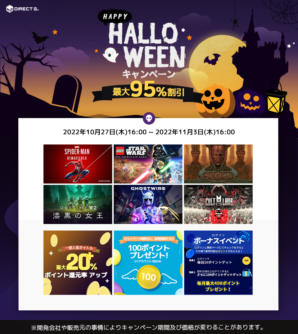 「DIRECT GAMES」,約500本のタイトルを対象にした最大95%オフのセール“ハッピーハロウィンキャンペーン”スタート