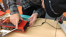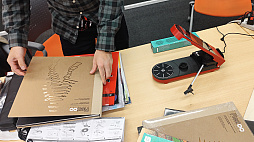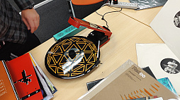 ![]() 「Rez」のアルバムを取り出すCOSIO氏。なお写真に2セット写っているのは,同じものを筆者も持ってきていたため |