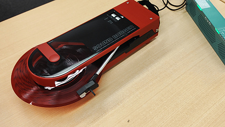 サウンドバーガー,ソノシートを鳴らせる。恐らく旧ソビエト連邦のアングラで流通していたX線フィルムを用いた簡易レコード・肋骨レコードも鳴らせるだろう。