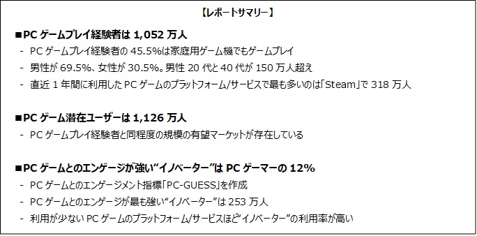 ゲームエイジ総研,7万人規模の“PCゲーム調査専用パネル”を構築。PCゲームユーザーは1052万人,潜在ユーザーは1126万人という調査結果に