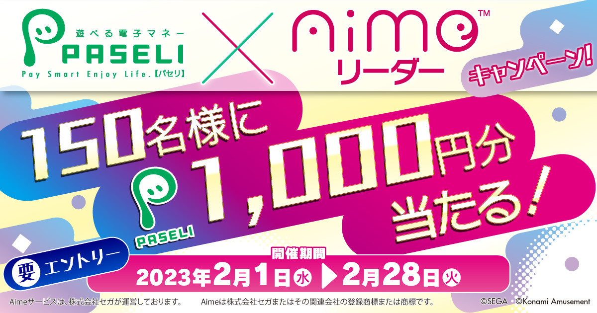 1000円相当のPASELIが抽選で当たるAimeリーダー キャンペーンが2月28日まで開催中