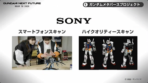 ユーザーが作ったガンプラを写真だけでなく。立体造形としてメタバース空間で楽しめるよう,ガンプラをスキャンするサービスの研究も進められている。これは,ユーザーのスマートフォンで手軽にガンプラをスキャンし,メタバースに転送可能な環境を実現するものだ。実際にスキャンしたガンプラのCGをメタバースに転送するところまで検証が完了しているという。