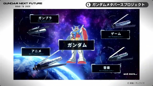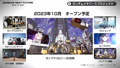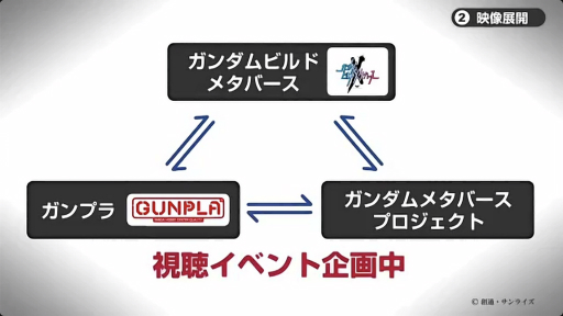 とくにガンダムビルドシリーズは2023年に10周年を迎えるため,その記念映像が全3話構成で制作中だという。また10周年記念企画としてアニメ,ガンプラ,メタバースを連携させ,ガンダムメタバースでの映像視聴やイベントなども企画しているとのこと。将来的には,ガンダムメタバース内でのガンダムバトルの実現を目指していることも明かされた。