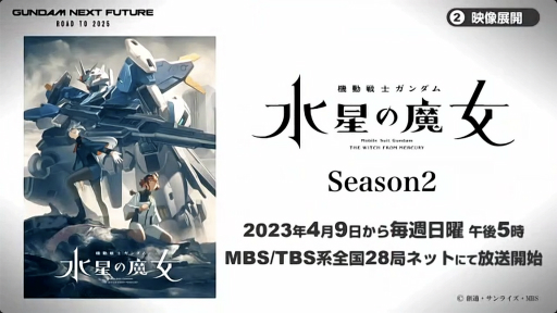 映像展開では,アニメ「機動戦士ガンダム 水星の魔女」のSeason 2が,2023年4月9日より放映されることが紹介された。