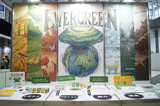 展示されていた作品の中でも特に目をひいたのが,創造主となって緑あふれる惑星を作り上げるボードゲーム「エバーグリーン」だ。