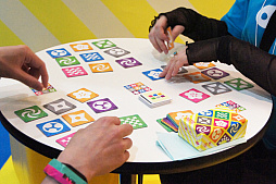 ![]() 美術館員と画家になり,美術品に紛れ込んだ贋作を探し出すイラスト連想系の協力型カードゲーム「Belratti」。双方が選んだカードを正しく推察する,審美眼が問われるゲームだ |