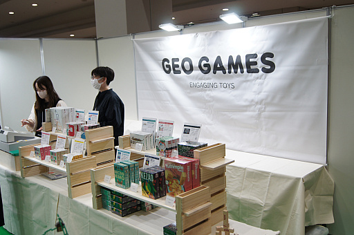 知育玩具×ボードゲームをコンセプトに商品を展開するジオジャパンのゲームブランド“GEO GAMES”では,新商品の「ゆびスゴロク」と「MICRONIMO」が出展されていた。