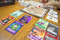 ![]() 正体隠匿要素とトリックテイキングを融合したカードゲーム「Inside Job」。協力してミッションの達成を目指しつつ,妨害してくるスパイを見抜く必要がある |